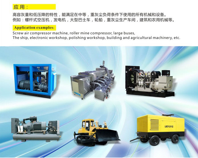 靈活托架系統,便于安裝與維護; 無需工具即可更換濾芯;  全面兼容Atlas與Mann的標準。